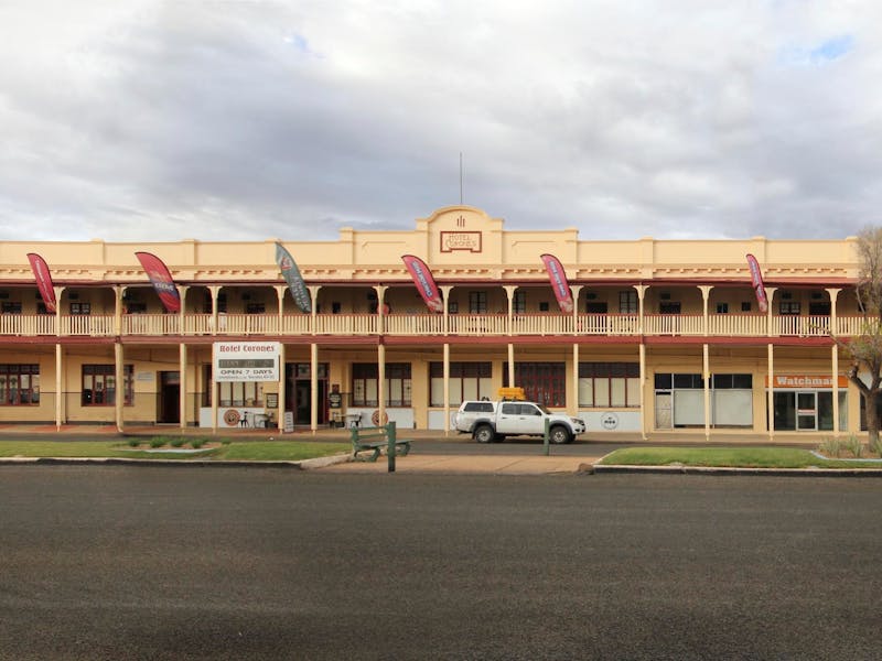 The Hotel Corones is the most famous historic landmark in Charleville. It is one of the few masonry buildings built in the 1920s and represents the social and economic fabric of those prosperous and pioneering days.