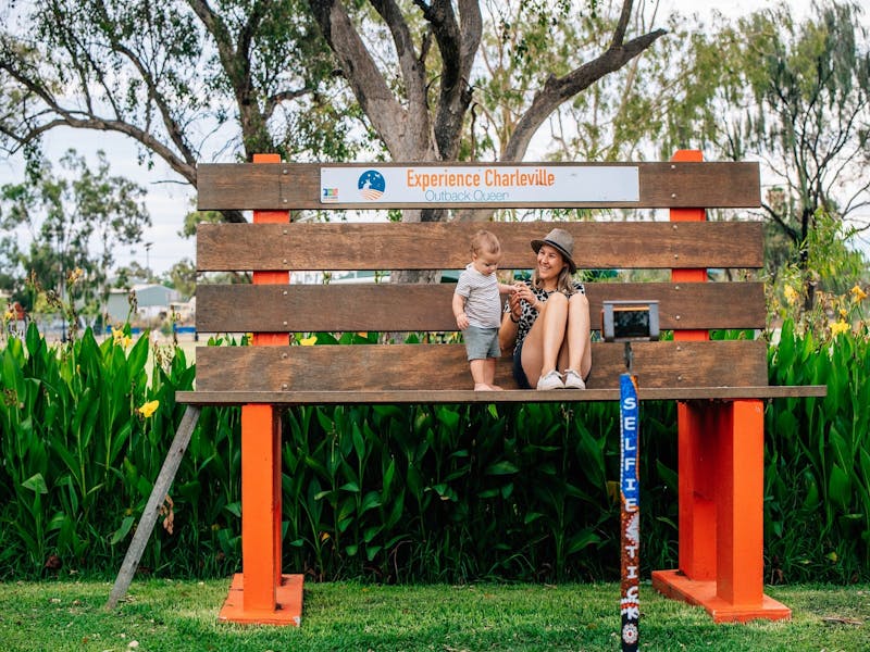 Within this award-winning peaceful pretty park there is plenty to see and do. Stroll the pathways and read about 18 different species of Outback Trees along the native Outback Timber Walk, feed the ducks, see the rustic sculptures, pause a moment up high on the big Red Chair then view the Steiger Vortex Rainmaking Guns, which were fired under a suitably cloudy sky in the hope of breaking the drought in 1902. Try your hand at Disc Golf (discs available for hire at the Charleville Visitor Information Centre).