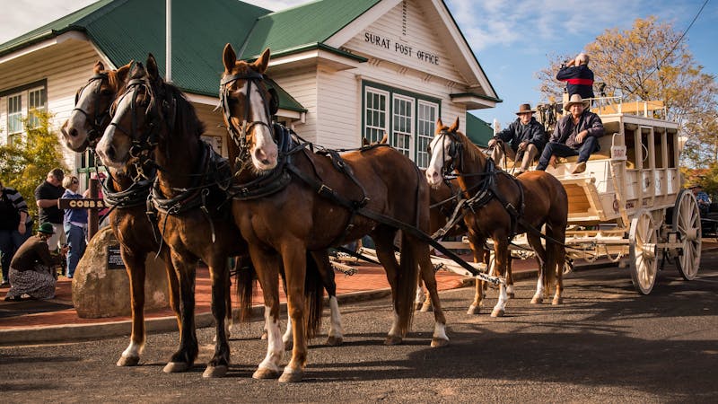On the 14th August 1924, the last horse-drawn Cobb & Co mail coach kicked up dust on the dirt track from Surat to Yuleba. These two communities come together every 5 years to host a spectacular week long event the Cobb & Co Festival to celebrate this history.