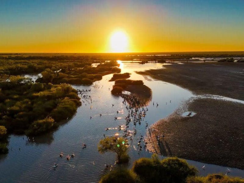 MoreEnjoy spectacular sunsets and abundant bird life from river bank or beside the creek when camping in Diamantina ‘under the shade of a coolibah tree’.